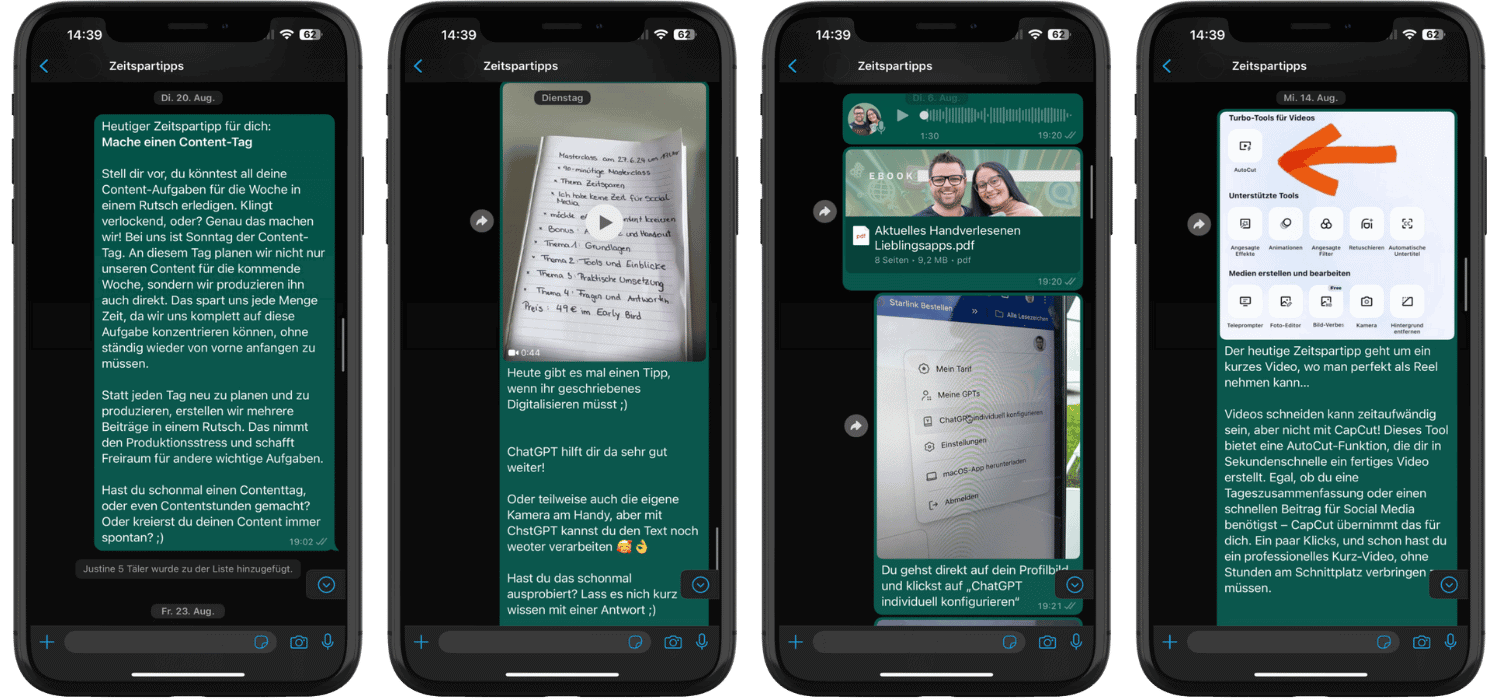 Mehr Kunden, weniger Aufwand, ohne stundenlanges Googeln. Alle 2 Wochen bekommst du exklusive Zeitspartipps, die du sofort umsetzen kannst direkt per WhatsApp.