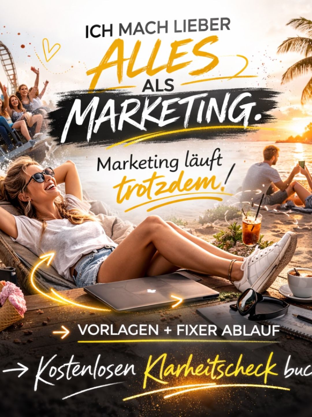 Mehr Kunden, weniger Aufwand – mit Persönlichkeit, KI & Herzblut. Gemeinsam gestalten, optimieren & automatisieren wir dein Marketing – so leicht, dass mehr Zeit für Eis 🍦, Achterbahnen 🎢 und dein Business bleibt.