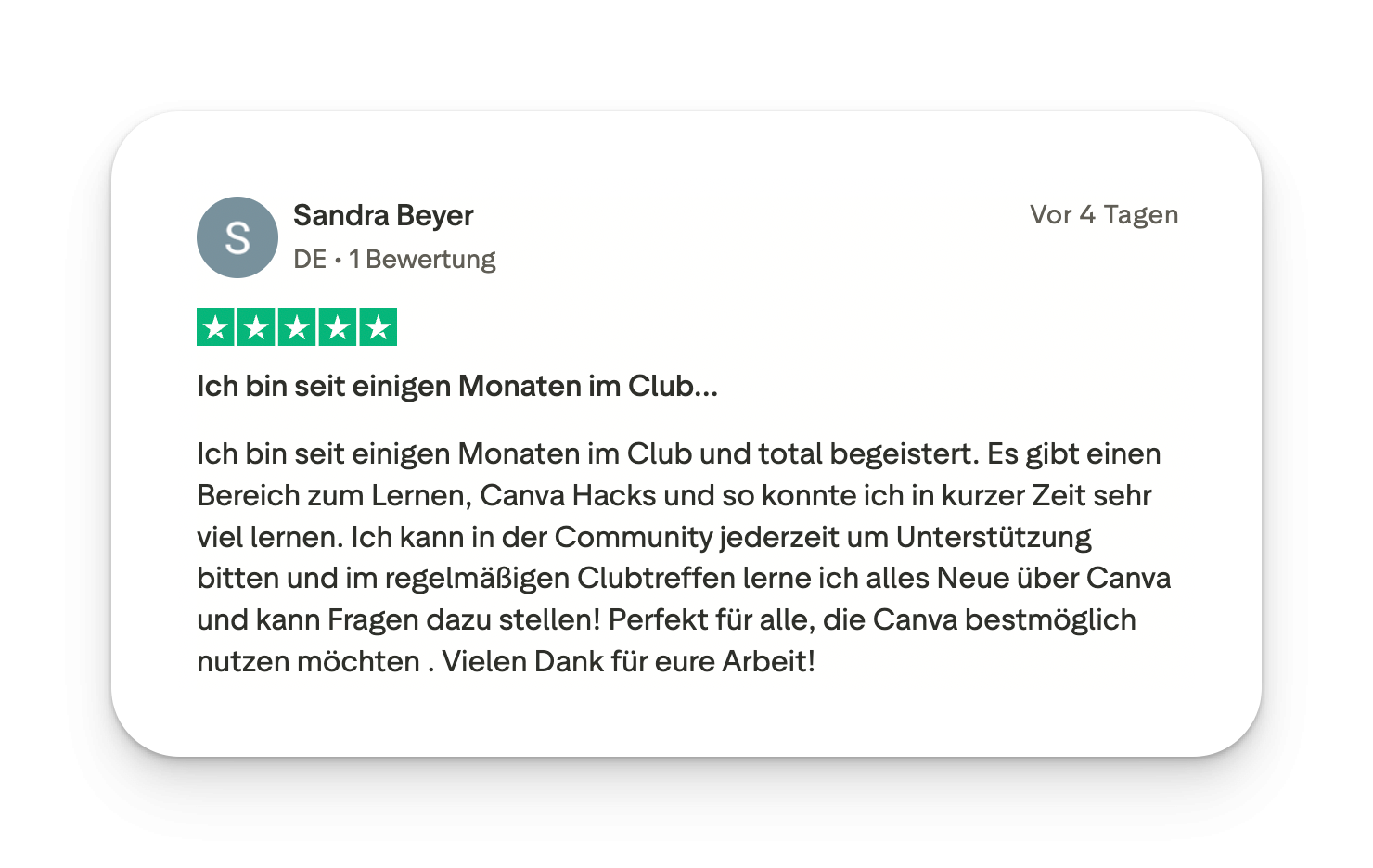 Weg vom Canva-Durcheinander. Hin zu Klarheit & Kreativität. Im Creative Club findest du alles, was dein Design-Alltag braucht. Klare Vorlagen, praxisnahe Beispiele und Unterstützung, die dich wirklich weiterbringt.