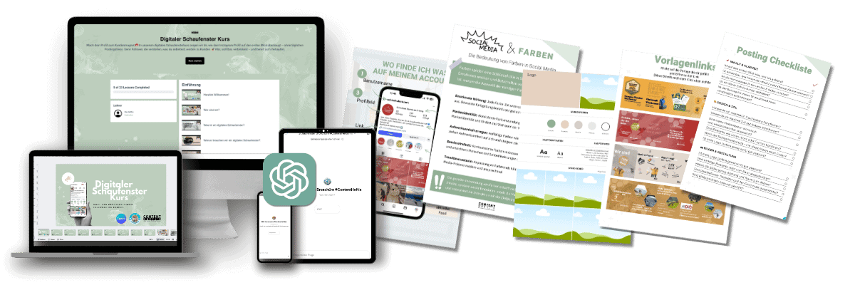 Alle Tools, Vorlagen & Support, um dein Instagram in ein echtes Schaufenster zu verwandeln, stressfrei, professionell und auf den Punkt.