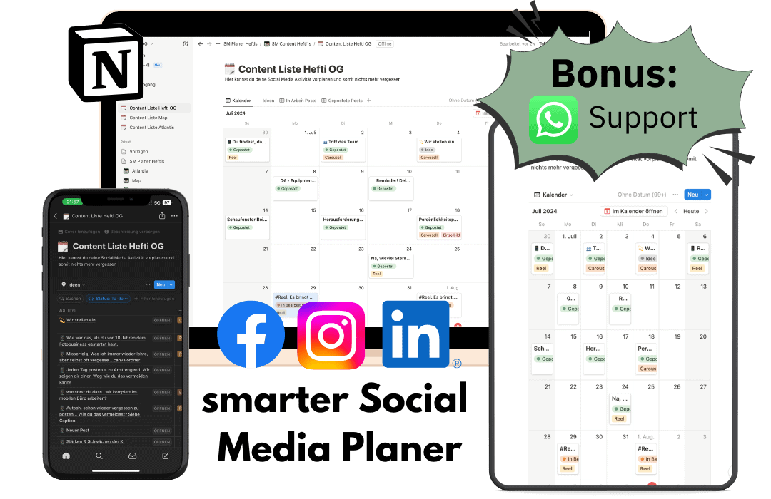 Starte noch heute und erlebe, wie einfach und stressfrei Social Media sein kann. Hol dir jetzt deinen smarten Social Media Planer!